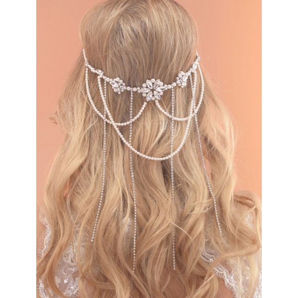 A more elaborate type of hair accessories with chains draping down which creates a romantic look for Her.