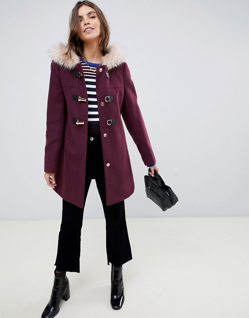 Credit: Miss Selfridge petite fur trim swing coat in pale grey, ASOS