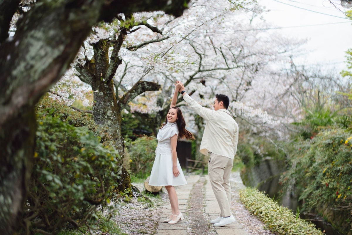 This picturesque walkway, lined with hundreds of cherry trees, follows a peaceful canal. The combination of soft pink petals and traditional Kyoto architecture makes it a timeless location for capturing love stories.