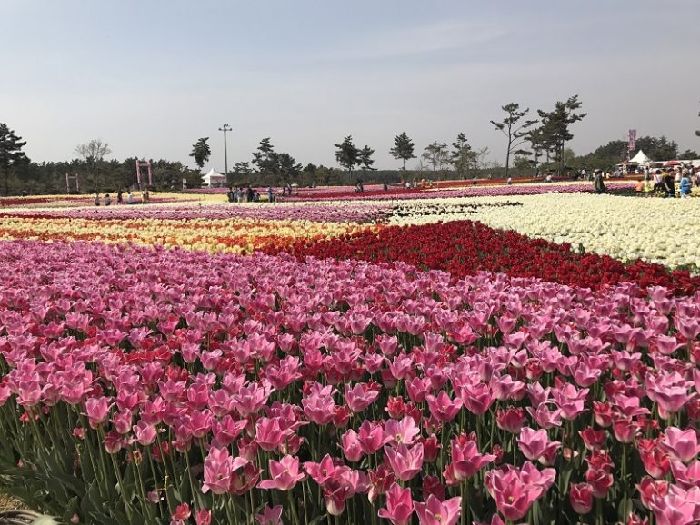 Swim in the sea of colour with over 300 species of tulips, amounting up to 1.5 million tulips in total at the Taean Tulip Festival (태안 튤립 축제). (What an impressive collection!) The theme differs each year and tulips will be planted and arranged to form shapes and drawings that are in line with the theme.
