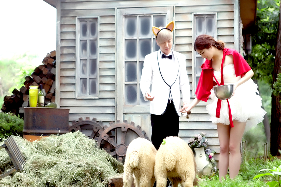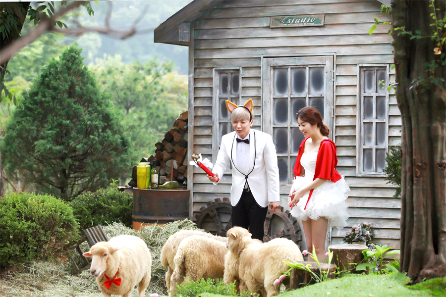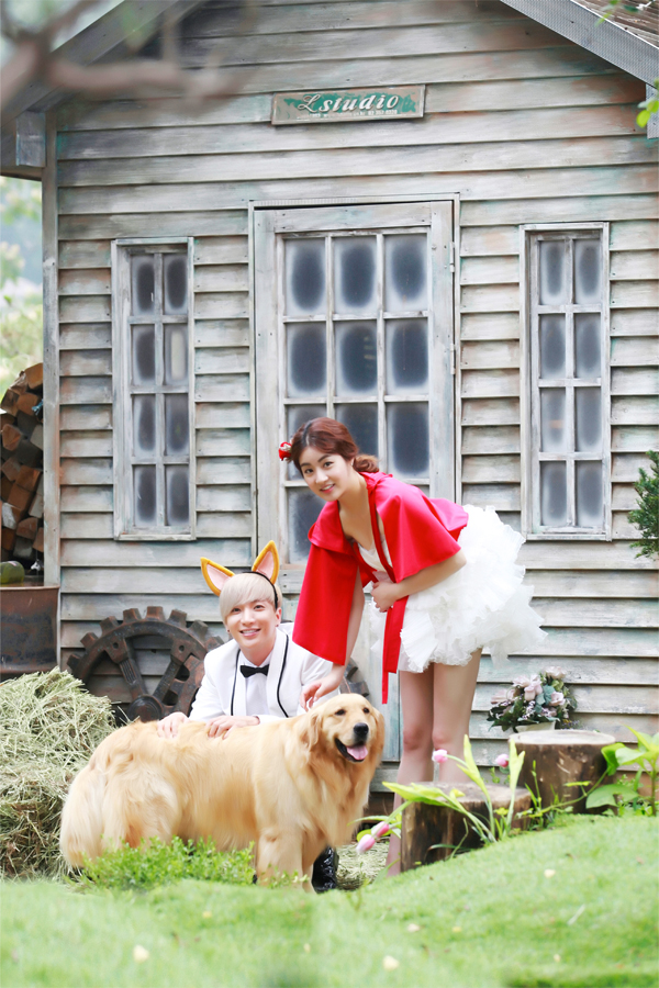 Teukso couple pre-wedding sports a dreamy fairytale theme. Notice Sora wearing little red riding hood’s cape and Lee Teuk donning a bad wolf headband?