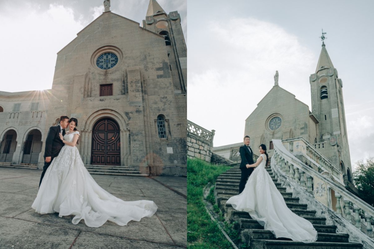 Macau is home to beautifully preserved historical churches that offer an elegant, sacred atmosphere for your pre-wedding shoot. Stepping inside, you’ll find intricate stained glass, vaulted ceilings, and stone altars that add depth and texture to your photos. The blend of Portuguese baroque design with Chinese touches creates a setting that is both spiritual and culturally rich.