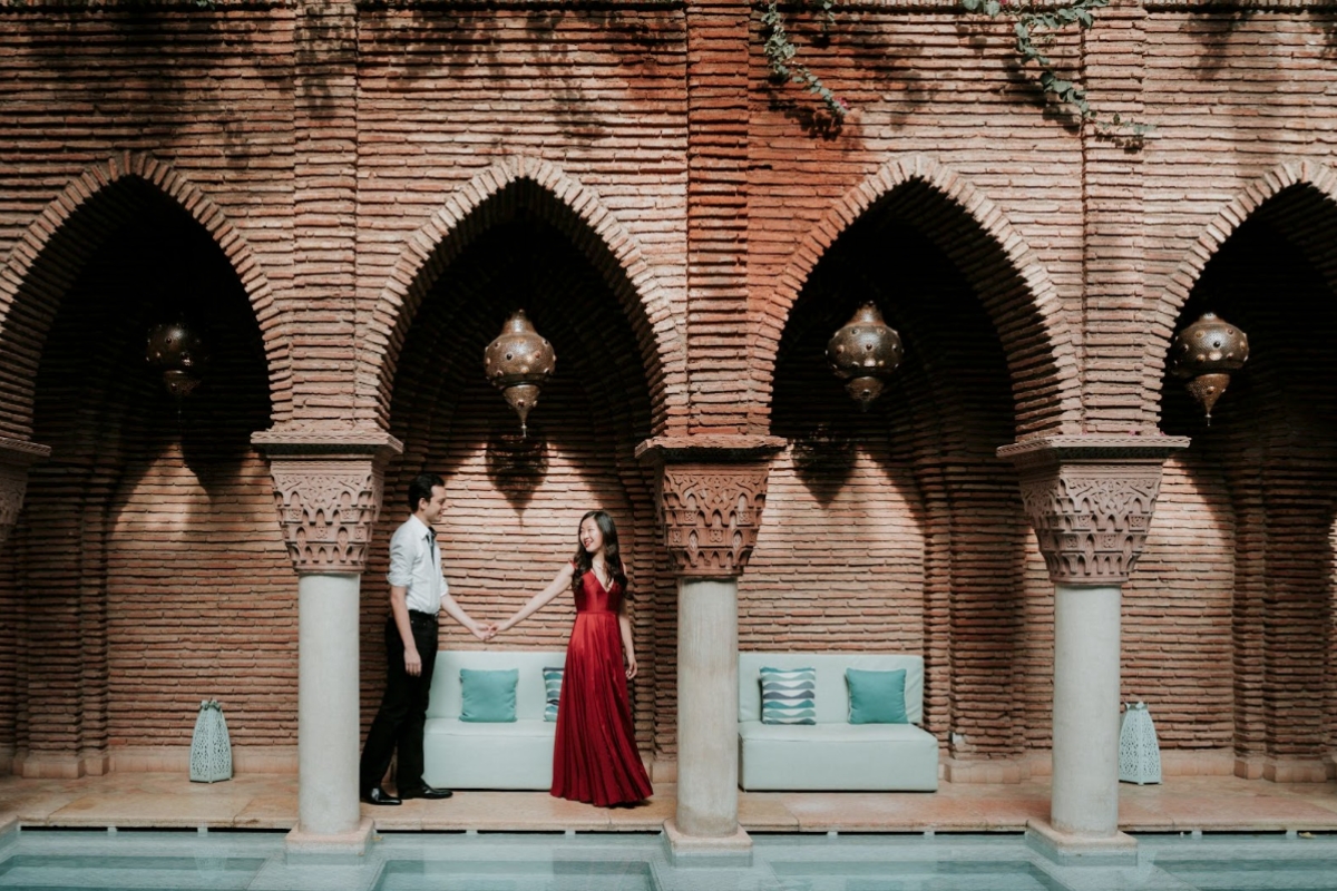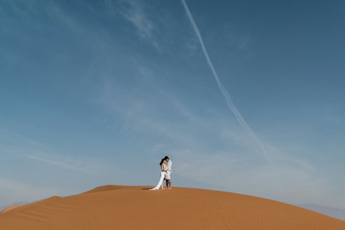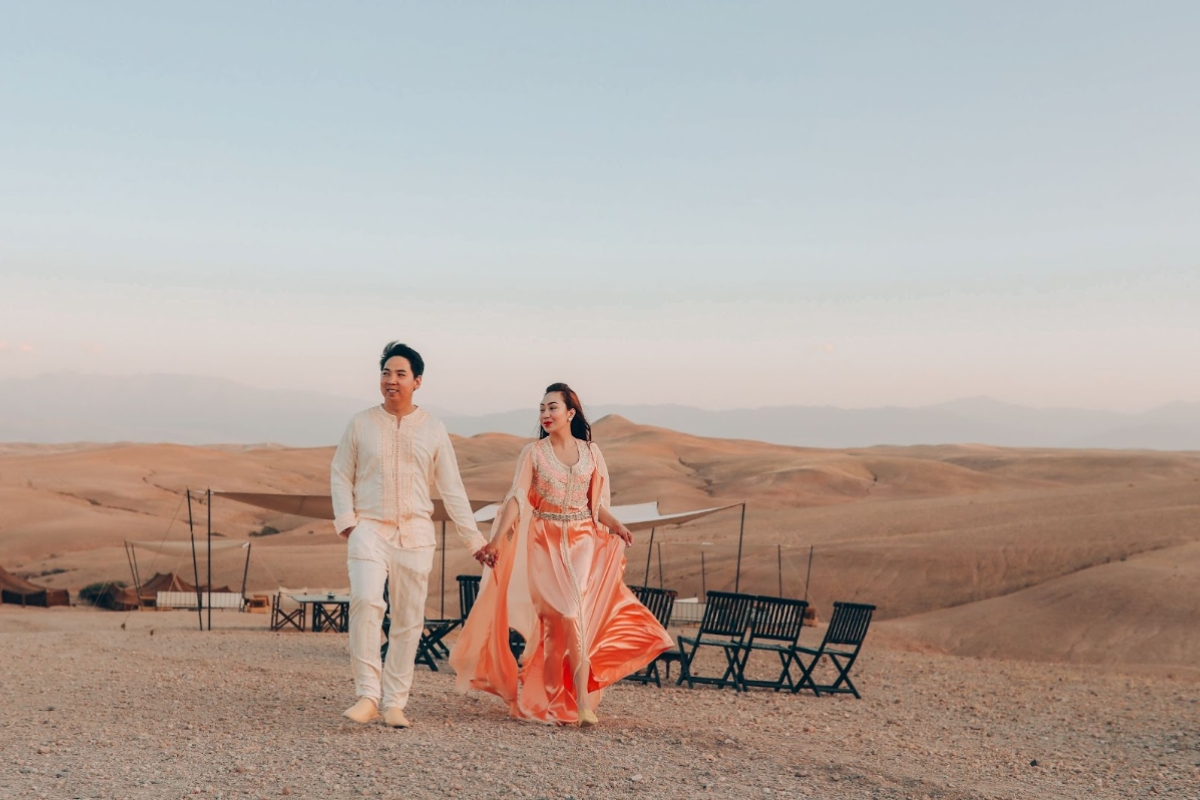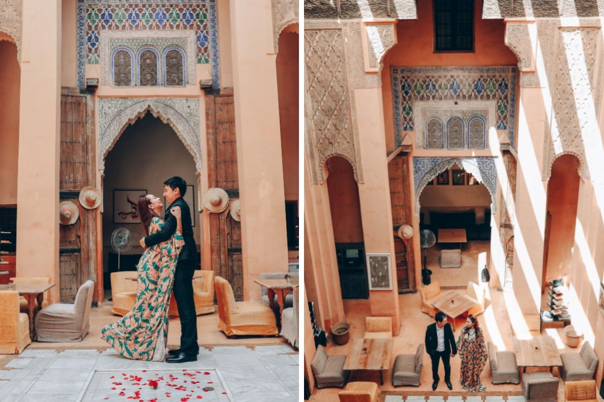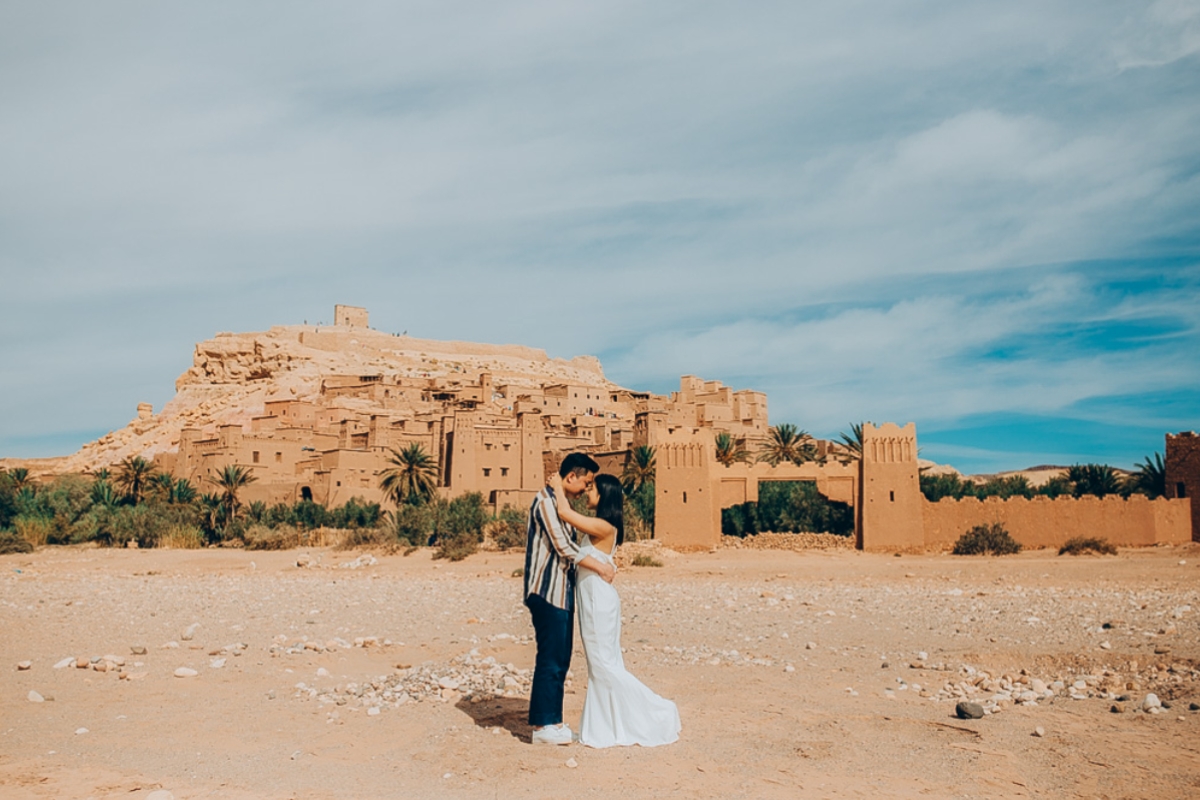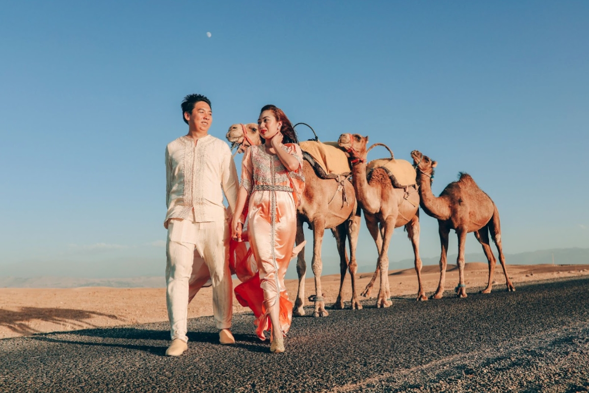 Flying to Morocco is simple with major airlines operating regular international routes. The most popular entry points are Marrakesh Menara Airport (RAK) and Casablanca Mohammed V International Airport (CMN). Direct flights are available from major cities in Europe, the Middle East, and Asia, often at affordable rates. For couples coming from Asia, a layover in Doha, Dubai, or Istanbul is common. Once you arrive, it’s easy to get around using private transfers, ride-hailing apps, or hired drivers for more remote shoot locations. Planning your route in advance ensures a smoother, more relaxed pre-wedding experience.
