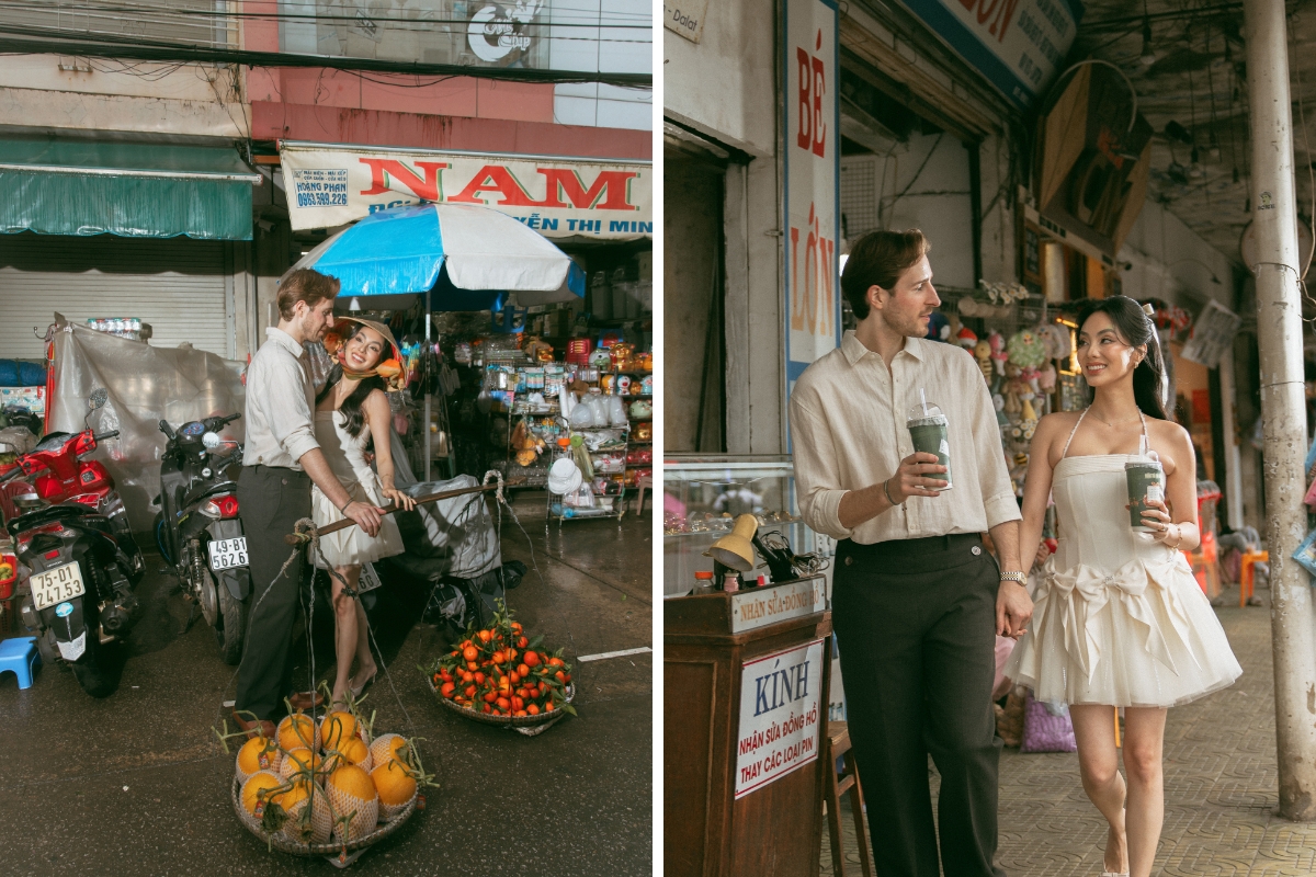 Vietnam’s charm lies not only in its landscapes but also in its people and daily life. From traditional Áo Dài to vibrant street scenes and age-old markets, the culture adds texture, warmth, and authenticity — turning your pre-wedding shoot into a true storytelling experience.